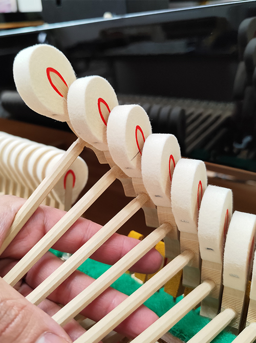 このようなサイズのピアノにしてはまず他では見られない特徴であるため、アパートや小さめの家に住む演奏家の自宅用の楽器として、また小さなコンサートホールに最適な楽器です。
