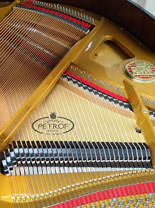 このモデルは長さが短めで楽器の幅も他のPETROF楽器と同じであるにもかかわらず、中音部が豊かで、しかしコンパクトな音を生み出します。