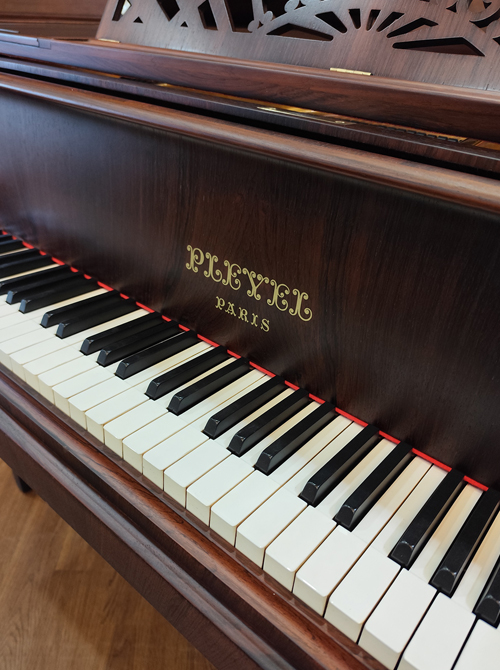 • ショパンやドビュッシーといった歴史的音楽家たちが愛用していたフランスの名器プレイエル。指先の微妙なニュアンスがダイレクトに音に反映され、奏者のすぐそばで語りかけるような、親密な演奏と相性が良く、プレイエル特有の甘美な音色が響きます。